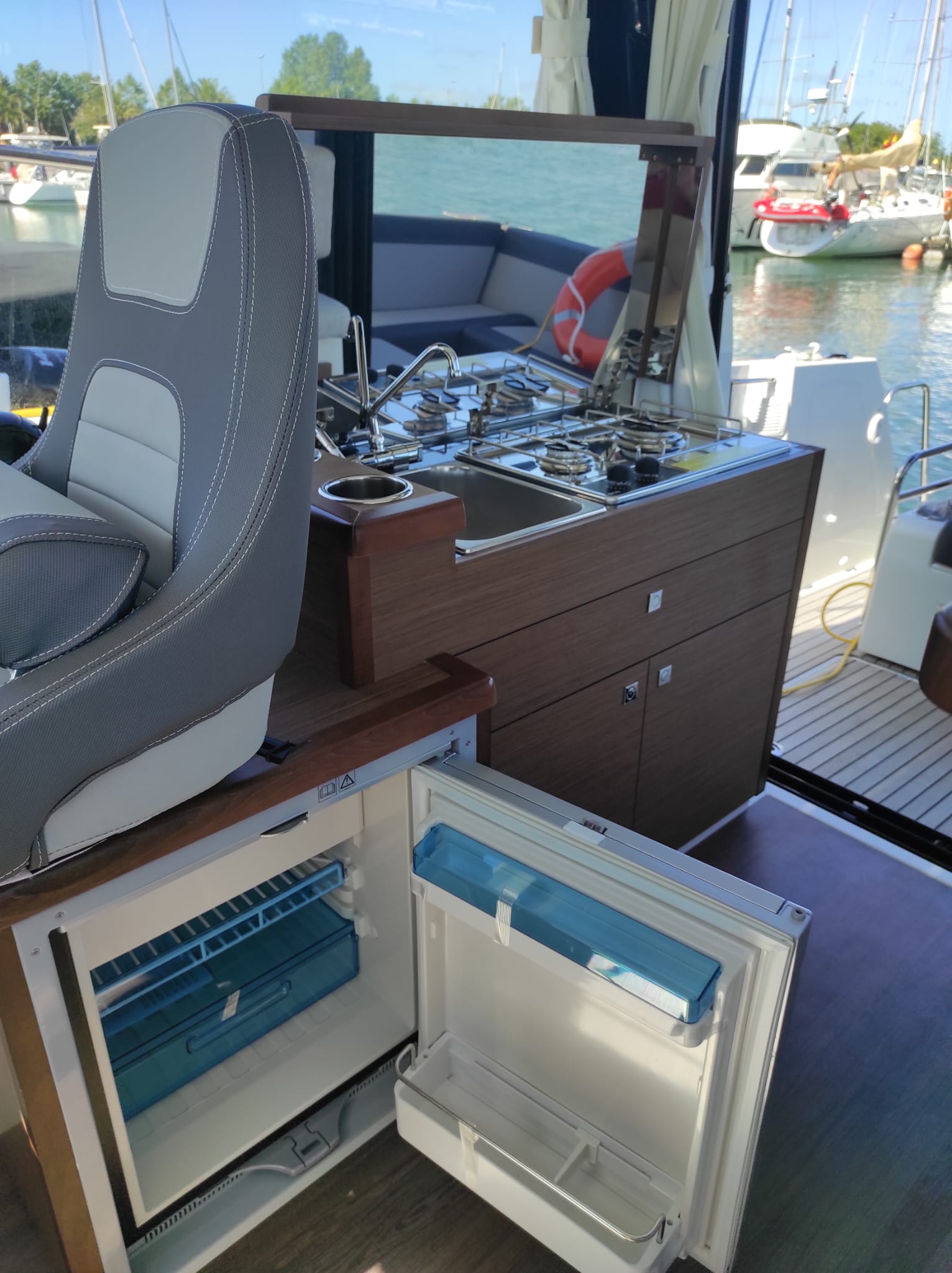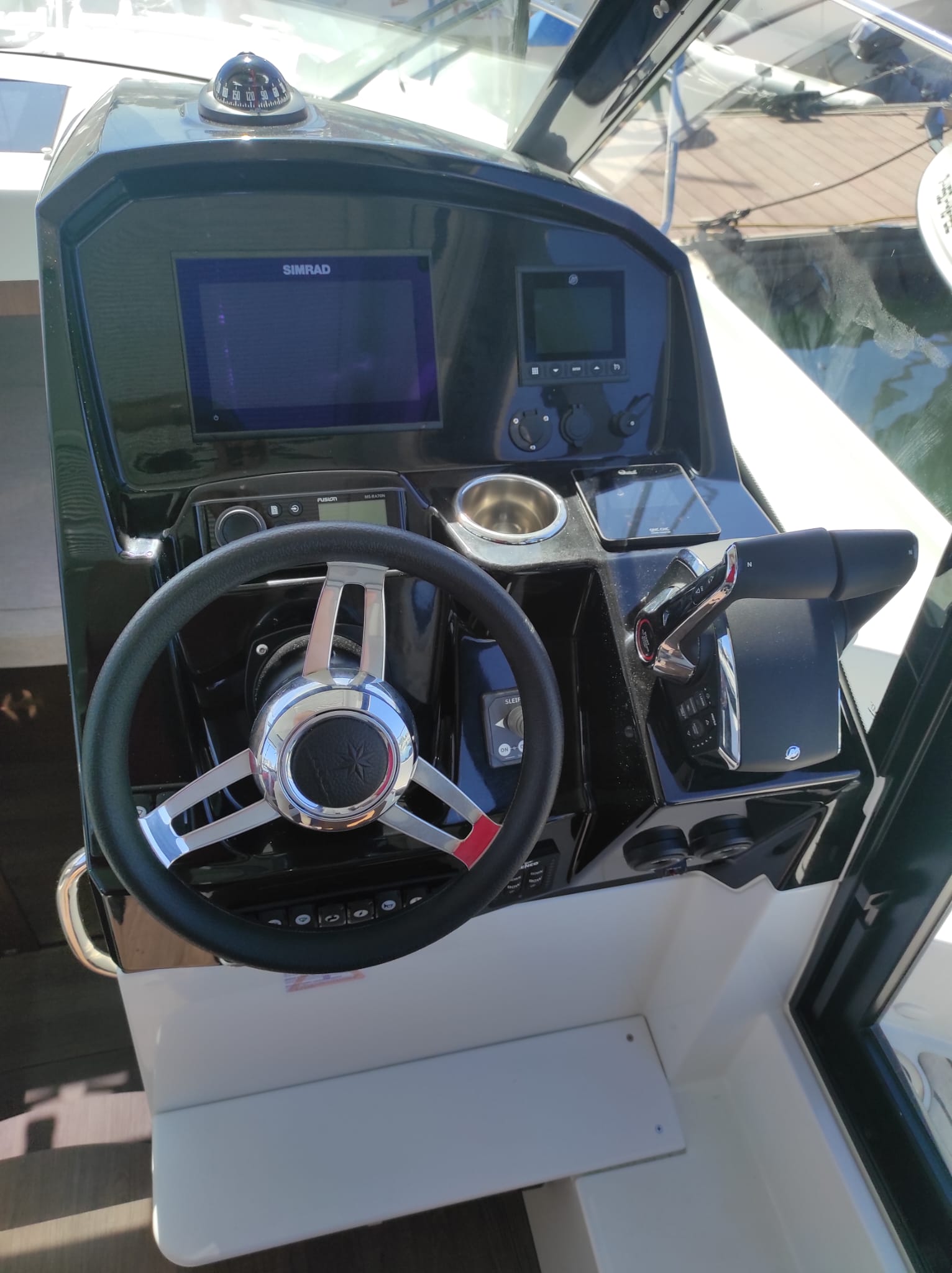 Gracias a sus motores fueraborda, con solo 78 horas de uso, combina eficiencia, seguridad y una navegación suave, siempre con consumos contenidos. Su salón luminoso, la cocina equipada y la excelente circulación a bordo hacen de esta embarcación una apuesta segura para quienes buscan versatilidad y calidad.