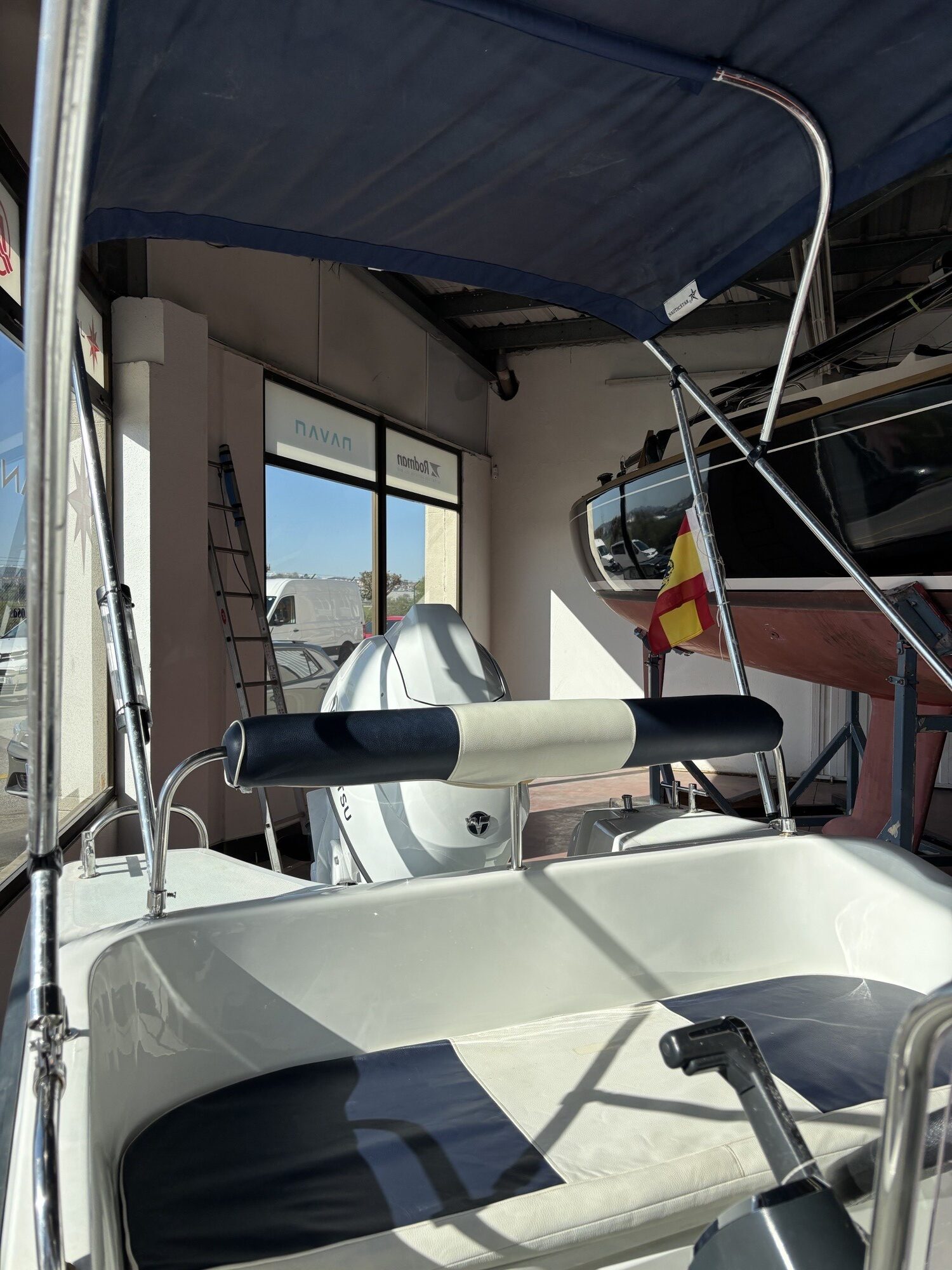 El barco se encuentra físicamente en nuestras instalaciones de exposición, le invitamos a venir a visitarle.
