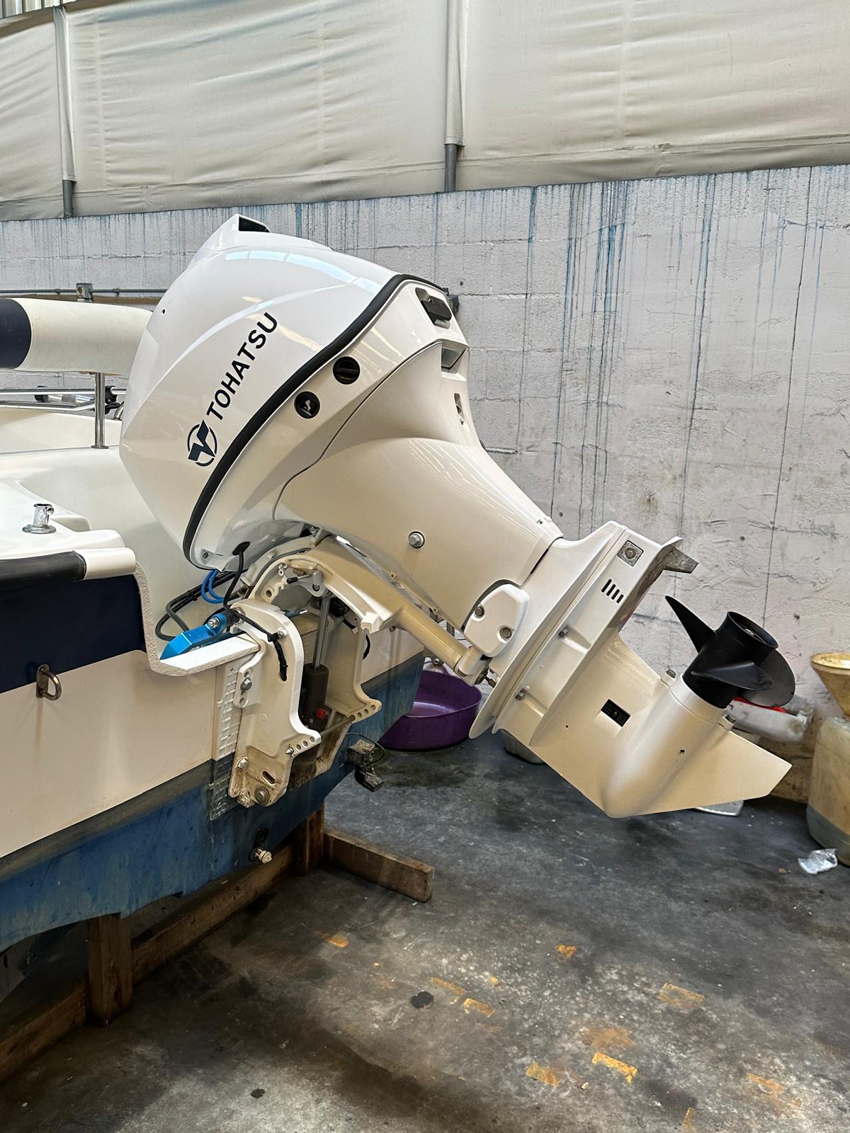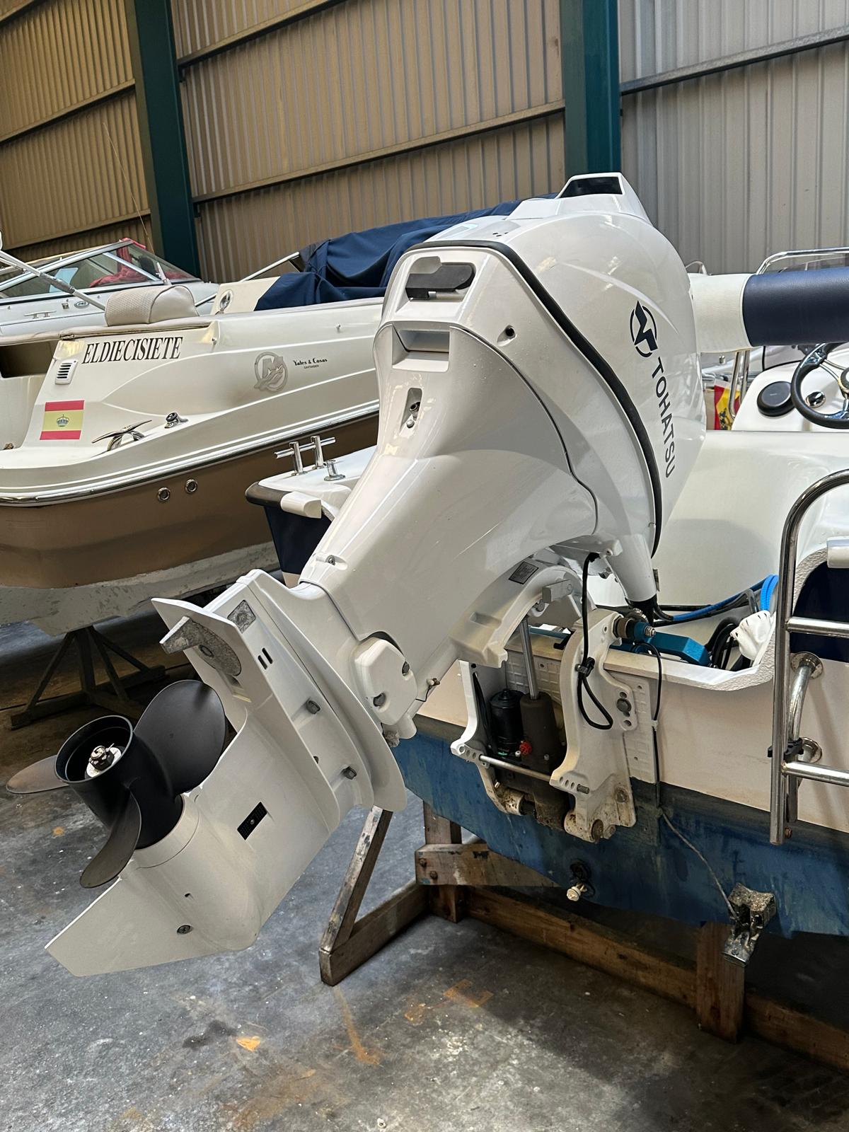 Equipa motor nuevo Tohatsu de 50cv con power trim y dirección hidráulica, ofreciendo una navegación suave, cómoda y eficiente. Dispone de amplio solárium en proa, toldo de sol y escalera de baño para máximo confort a bordo.